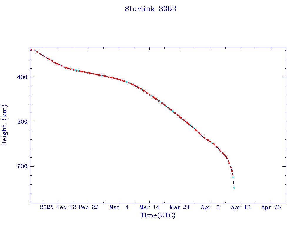 | Starlink 3053 | S49149 | R | 2021 Sep 14 | 2025 Apr 1? | 2025 Apr 10 |  |  |  |