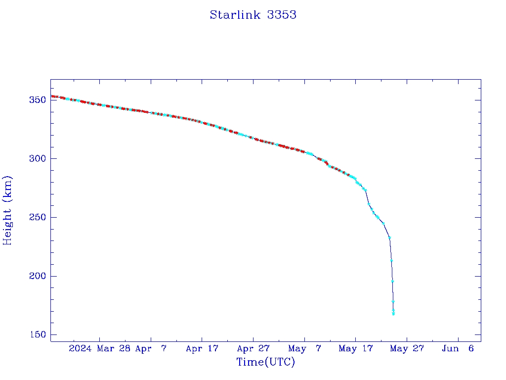 | Starlink 3353 | S50807 | R | 2022 Jan 6 | 2024 May 6? | 2024 May 24 |  |  |  |