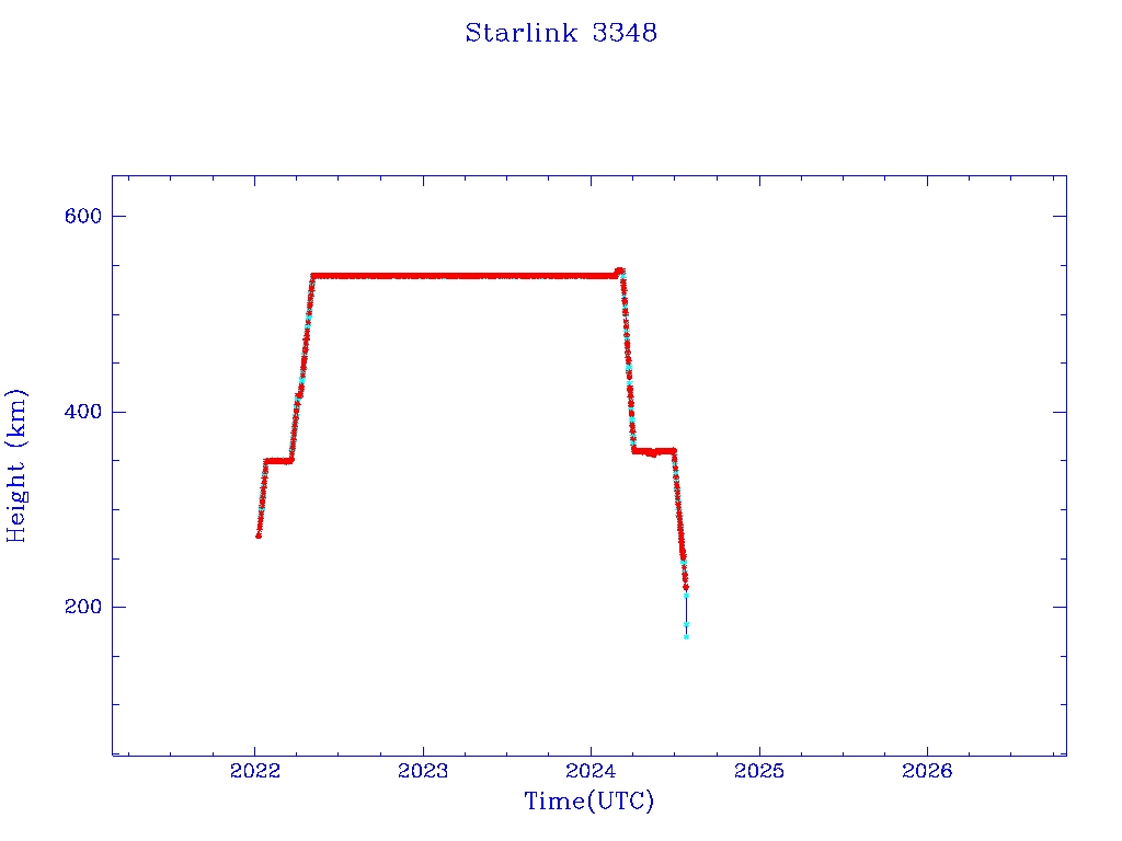 | Starlink 3348 | S50810 | R | 2022 Jan 6 | 2024 Jul 24? | 2024 Jul 25 |  |  |  |