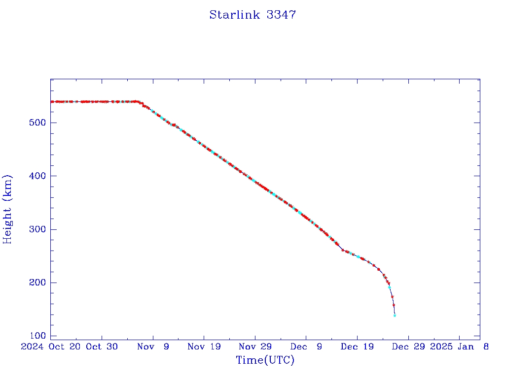 | Starlink 3319 | S50847 | R | 2022 Jan 6 | 2024 Nov 24? | 2024 Dec 19 |  |  |  |