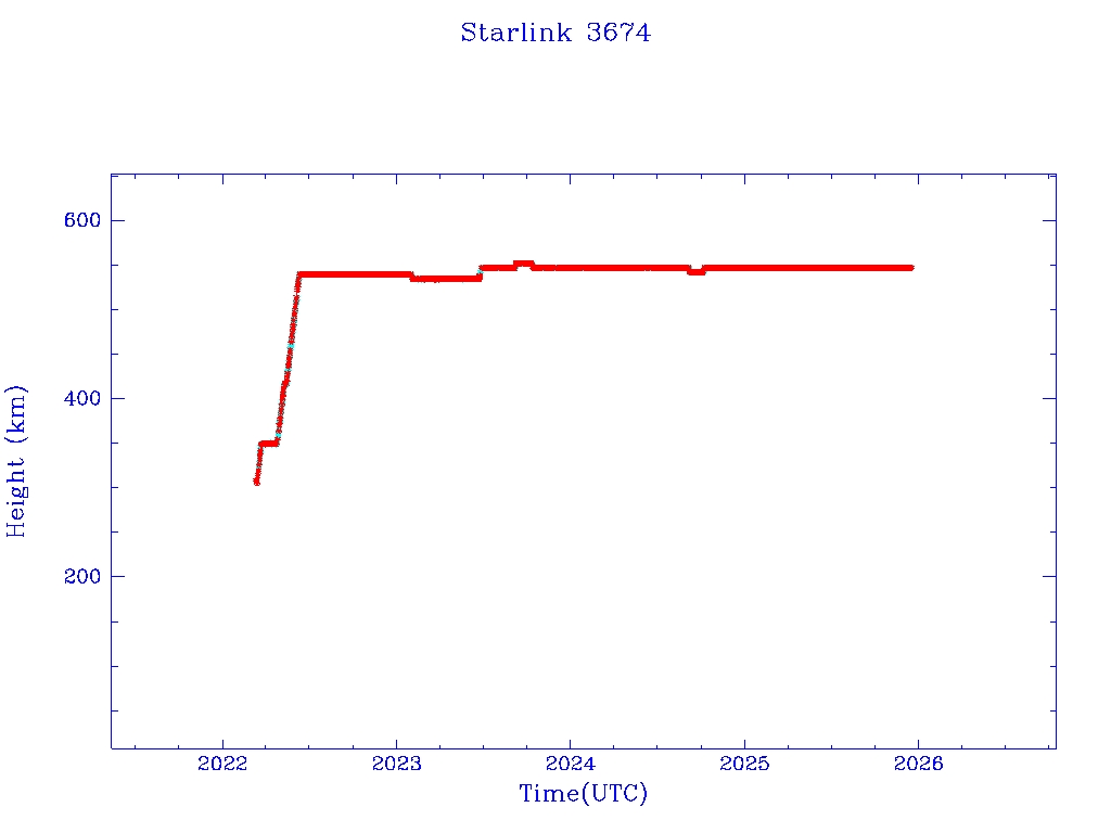| Starlink 3674 | S51975 | O | 2022 Mar 9 | * | - |  |  |  |