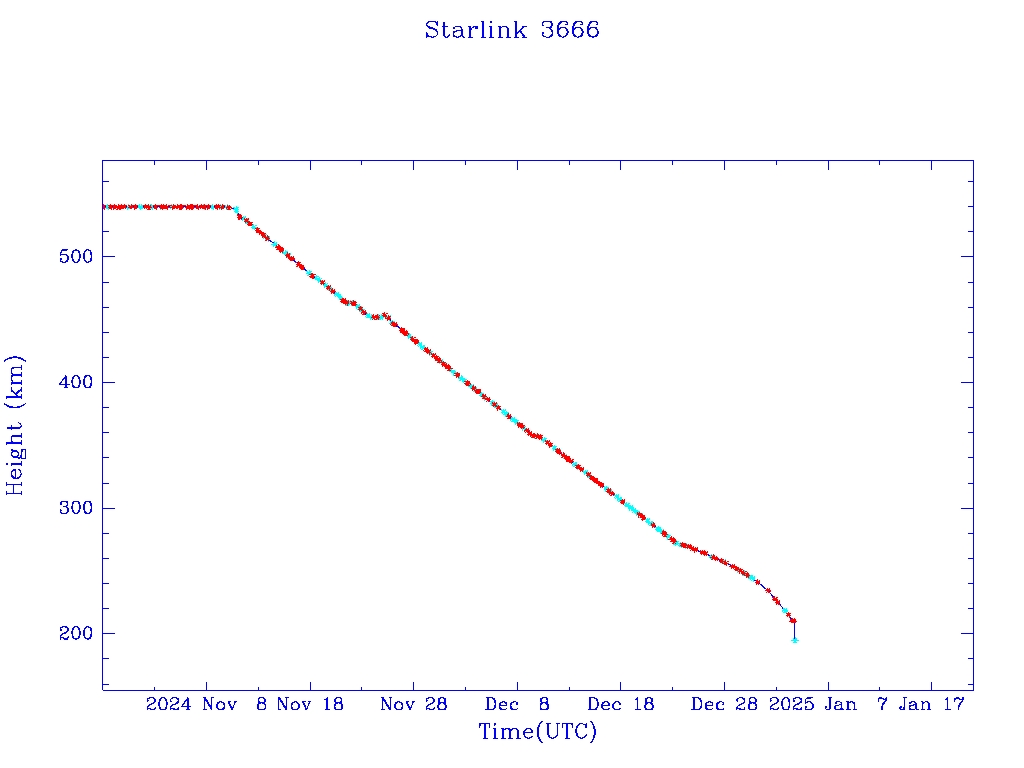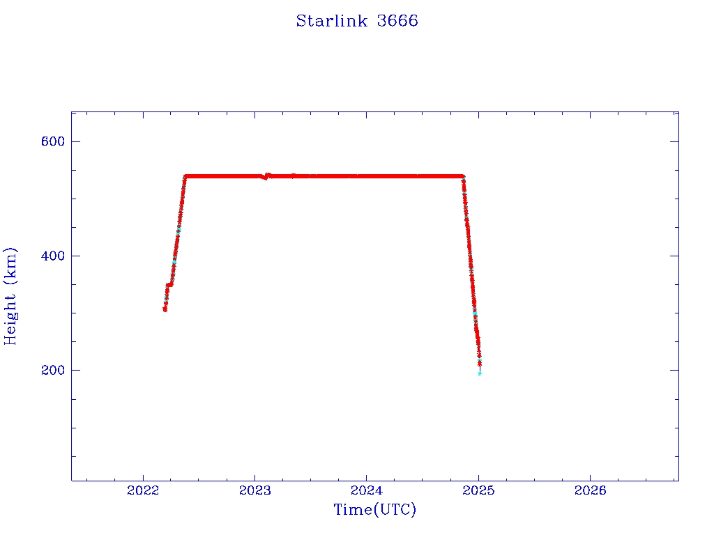 | Starlink 3666 | S51978 | R | 2022 Mar 9 | 2024 Dec 23? | 2025 Jan 4 |  |  |  |