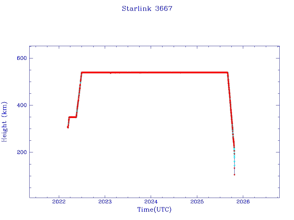 | Starlink 3667 | S51999 | R | 2022 Mar 9 | 2025 Oct 11? | 2025 Oct 23 |  |  |  |