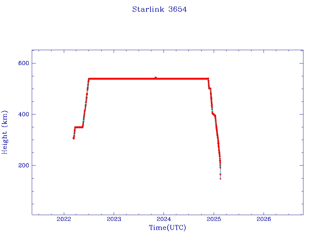 | Starlink 3654 | S52003 | R | 2022 Mar 9 | 2025 Feb 5? | 2025 Feb 17 |  |  |  |