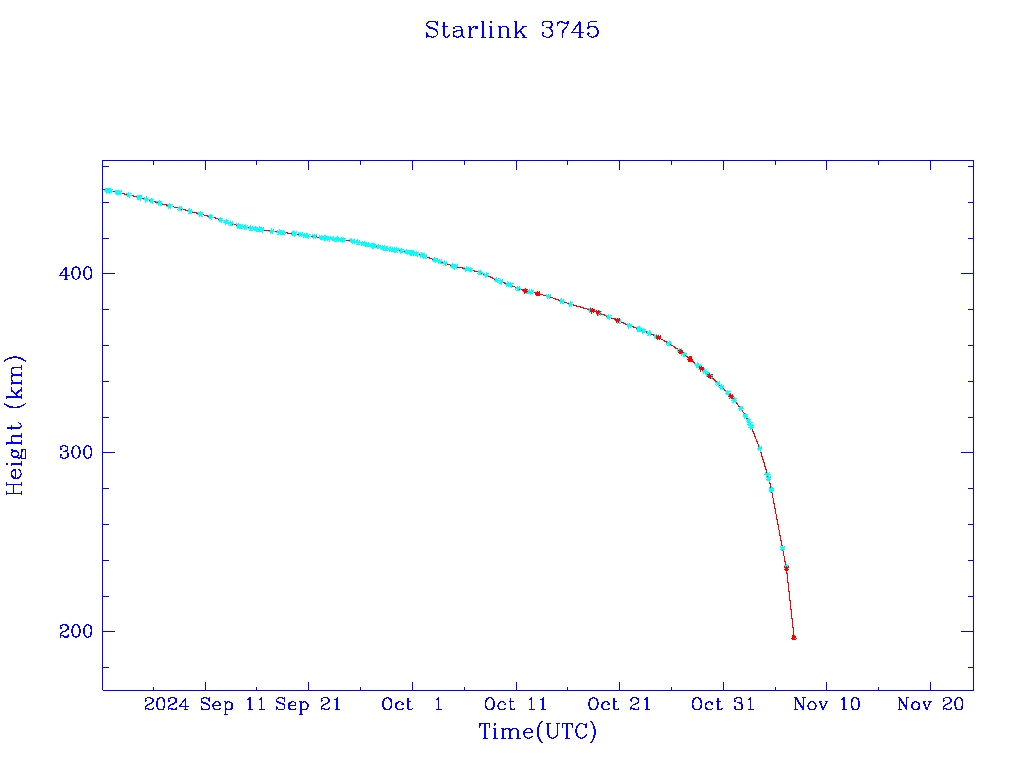| Starlink 3745 | S52308 | M | 2022 Apr 21 | 2023 Sep 29 | 2024 Nov 7 |  |  |  |