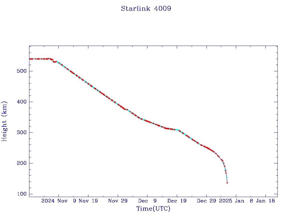| Starlink 4009 | S52624 | R | 2022 May 14 | 2024 Dec 27? | 2025 Jan 5 |  |  |  |