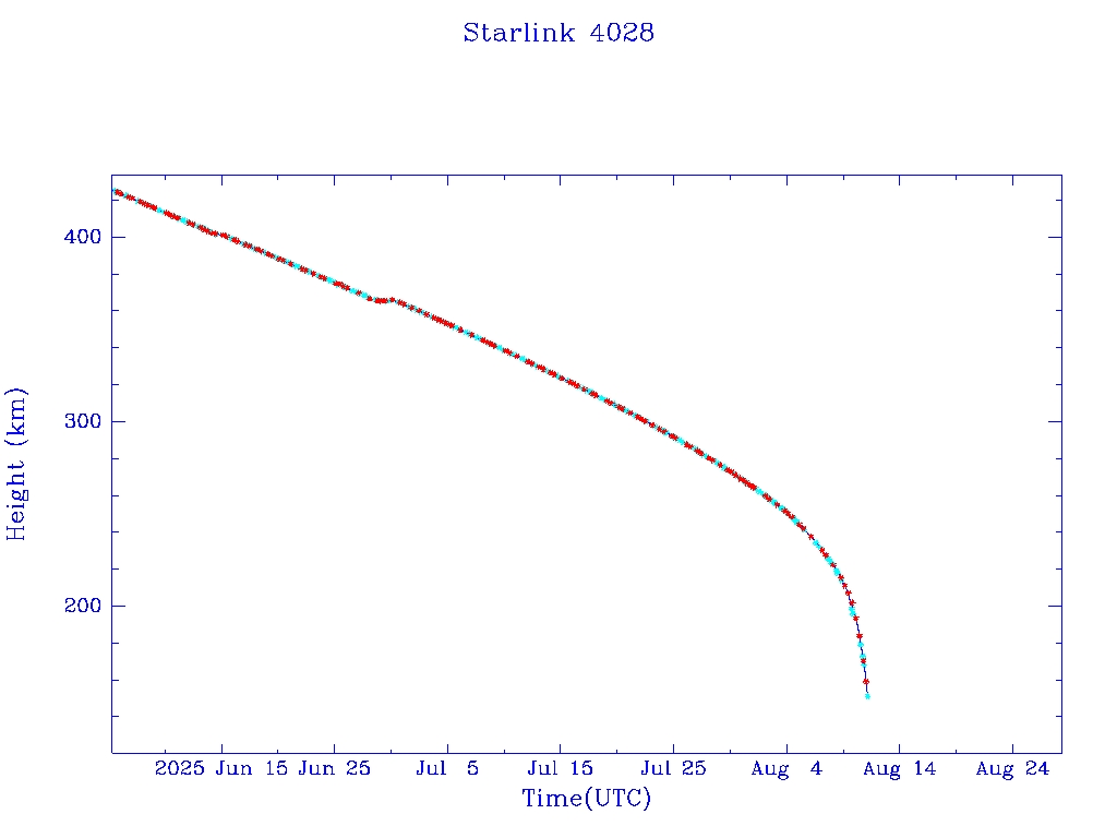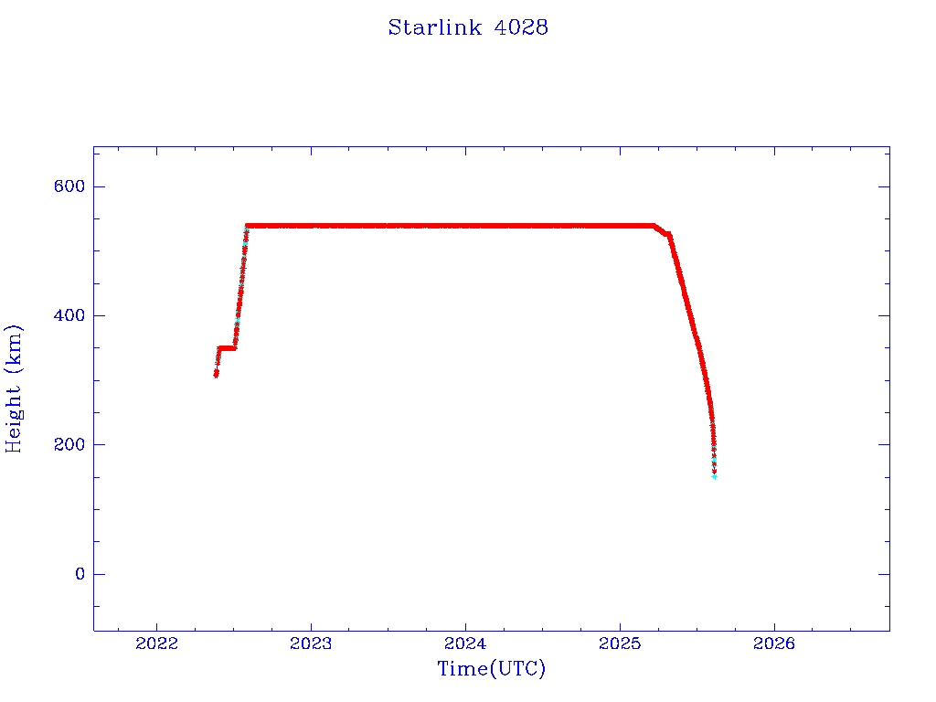 | Starlink 4028 | S52677 | R | 2022 May 18 | 2025 Jun 29 | 2025 Aug 11 |  |  |  |