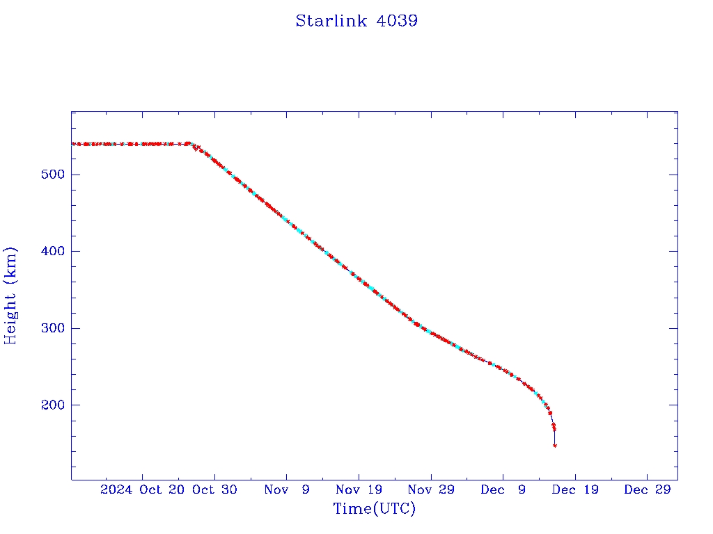 | Starlink 4039 | S52683 | R | 2022 May 18 | 2024 Nov 30? | 2024 Dec 16 |  |  |  |