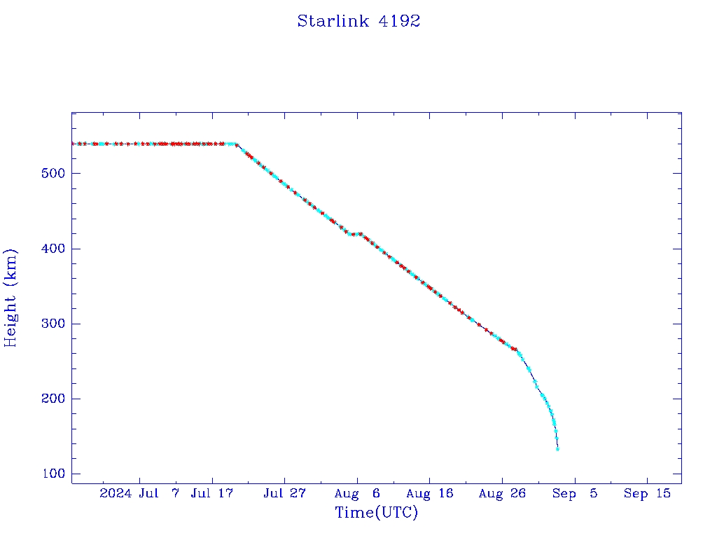 | Starlink 4192 | S52881 | R | 2022 Jun 17 | 2024 Aug 27 | 2024 Sep 2 |  |  |  |