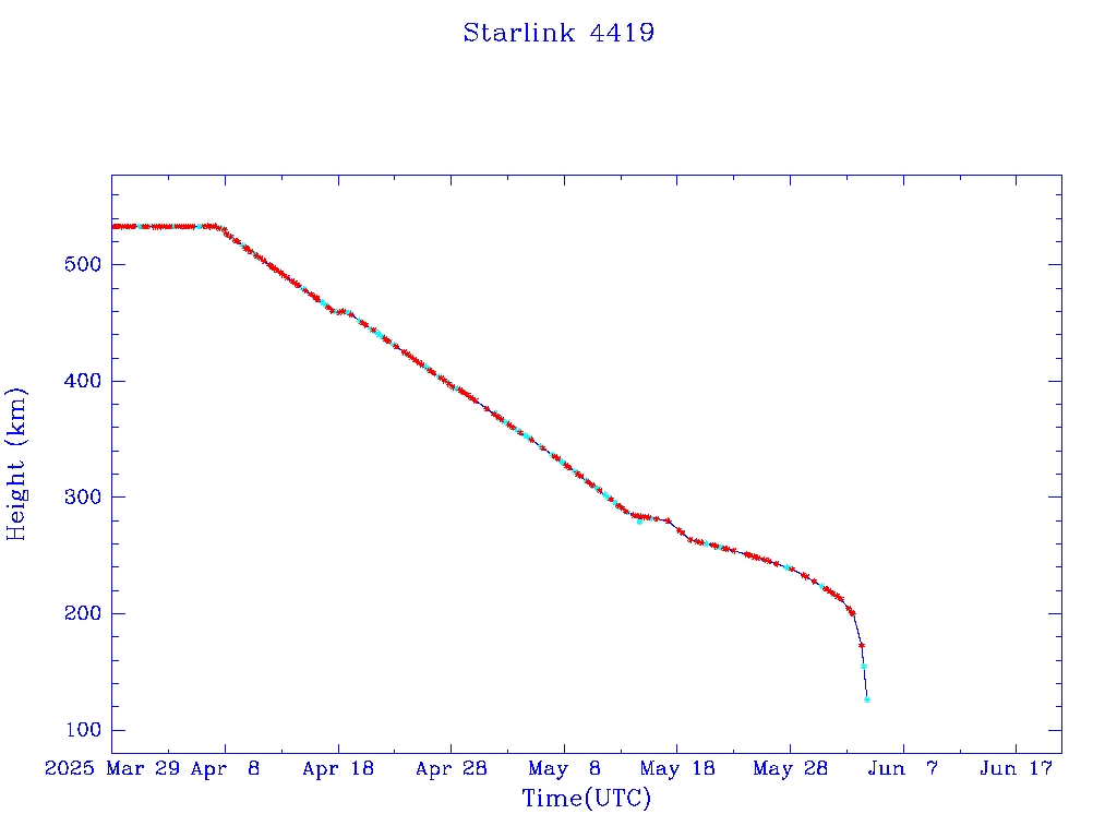 | Starlink 4419 | S53211 | R | 2022 Jul 22 | 2025 May 19? | 2025 Jun 4 |  |  |  |