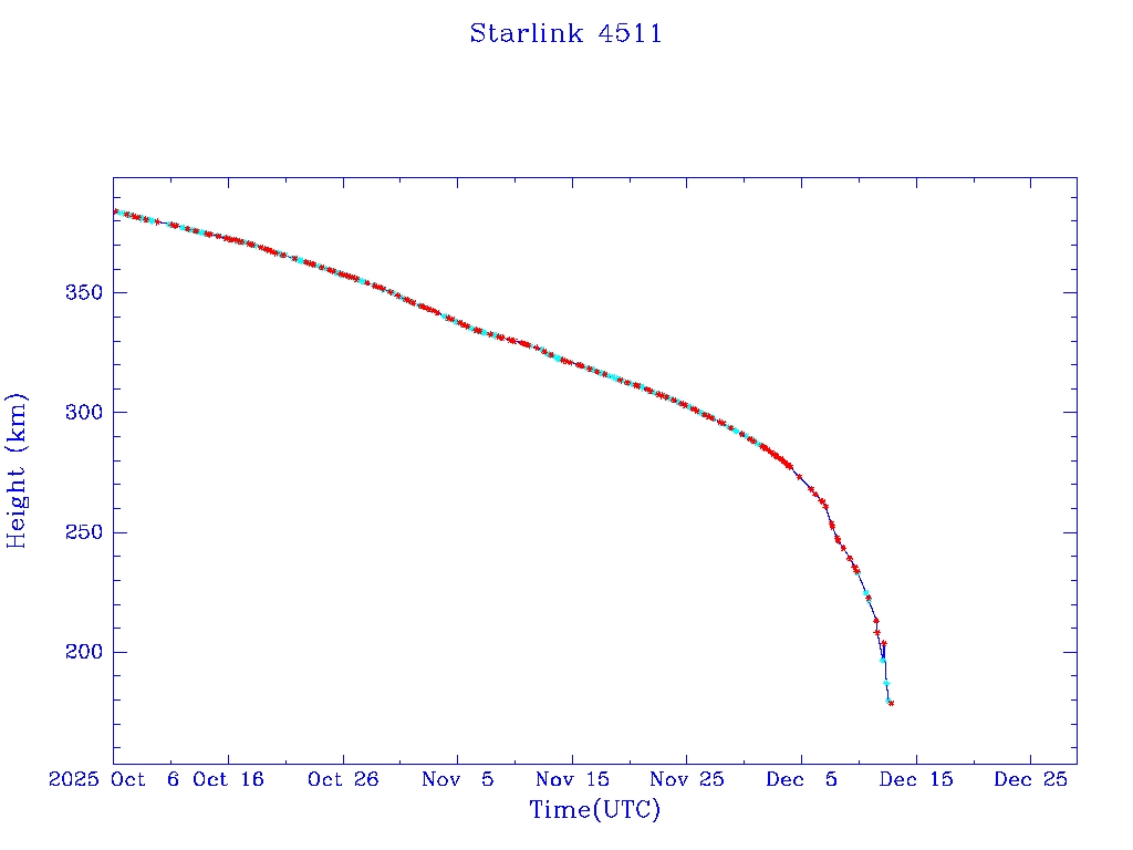 | Starlink 4511 | S53527 | R | 2022 Aug 19 | 2025 Nov 6? | 2025 Dec 12? |  |  |  |