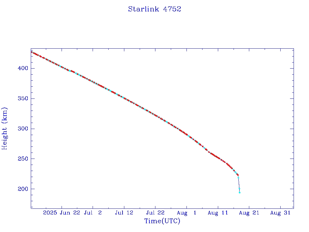 | Starlink 4752 | S53821 | R | 2022 Sep 19 | 2025 Jun 3? | 2025 Aug 18 |  |  |  |
