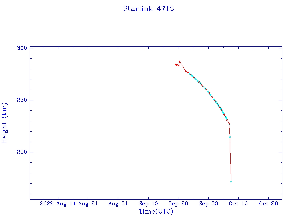 | Starlink 4713 | S53822 | F | 2022 Sep 19 | 2022 Oct 6 | 2022 Oct 7 |  |  |  |