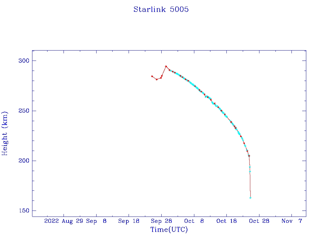 | Starlink 5005 | S53921 | F | 2022 Sep 24 | 2022 Oct 24 | 2022 Oct 25 |  |  |  |