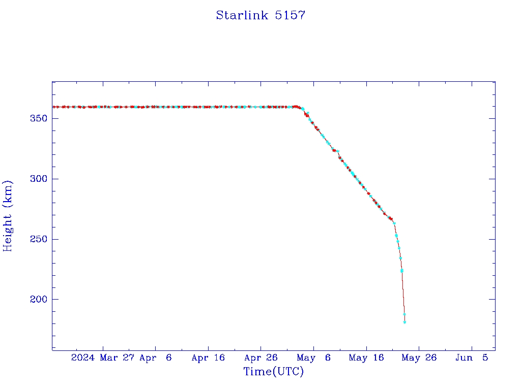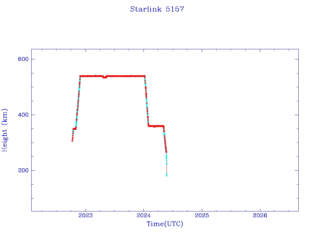 | Starlink 5157 | S53972 | R | 2022 Oct 5 | 2024 May 21 | 2024 May 23 |  |  |  |