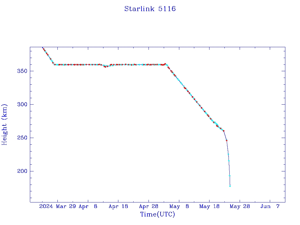 | Starlink 5116 | S54014 | R | 2022 Oct 5 | 2024 May 22? | 2024 May 25 |  |  |  |