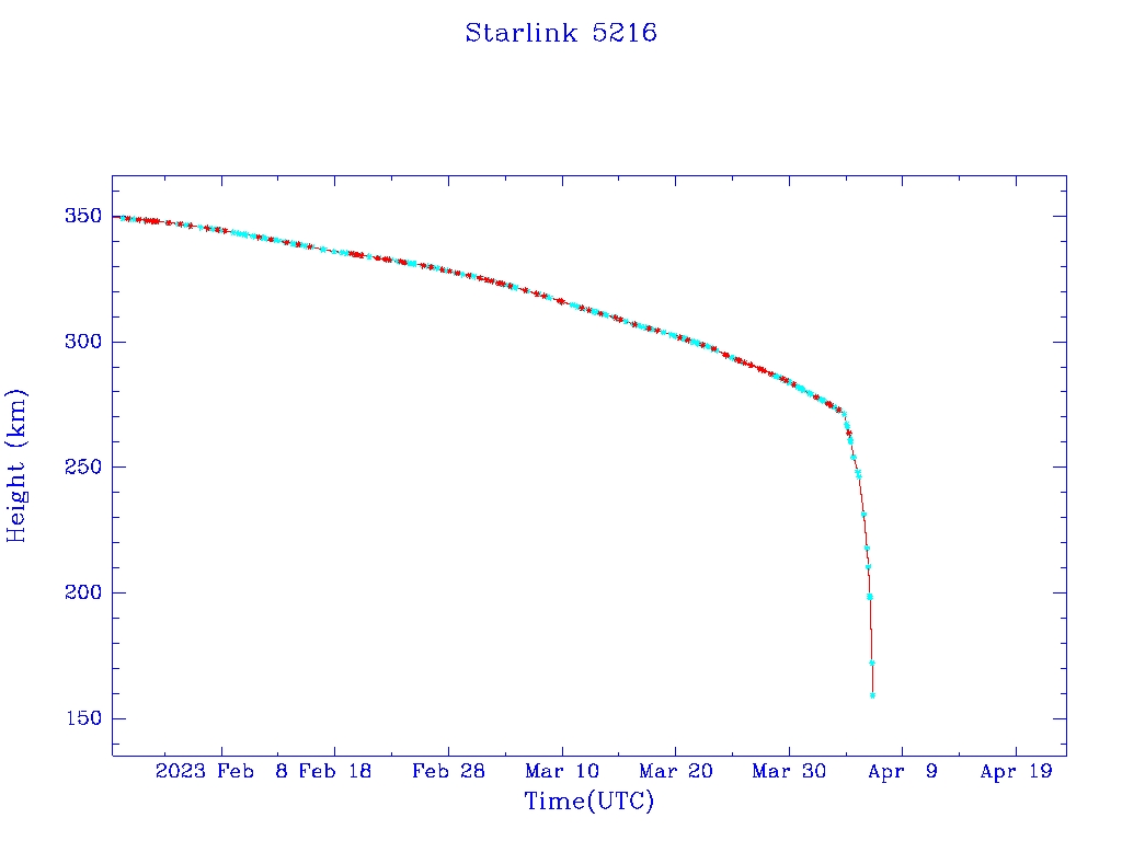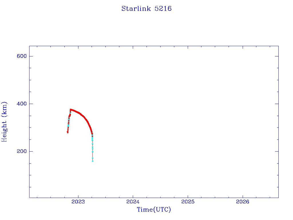 | Starlink 5216 | S54057 | M | 2022 Oct 20 | 2022 Nov 10 | 2023 Apr 6 |  |  |  |