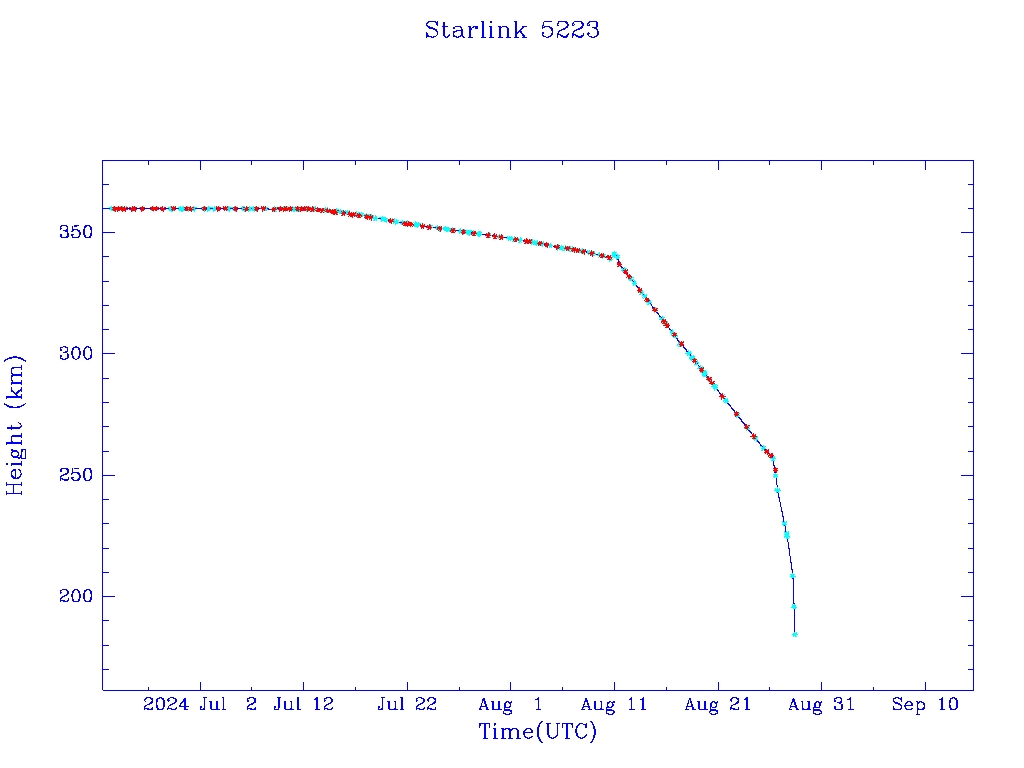| Starlink 5223 | S54069 | R | 2022 Oct 20 | 2024 Aug 26? | 2024 Aug 28 |  |  |  |