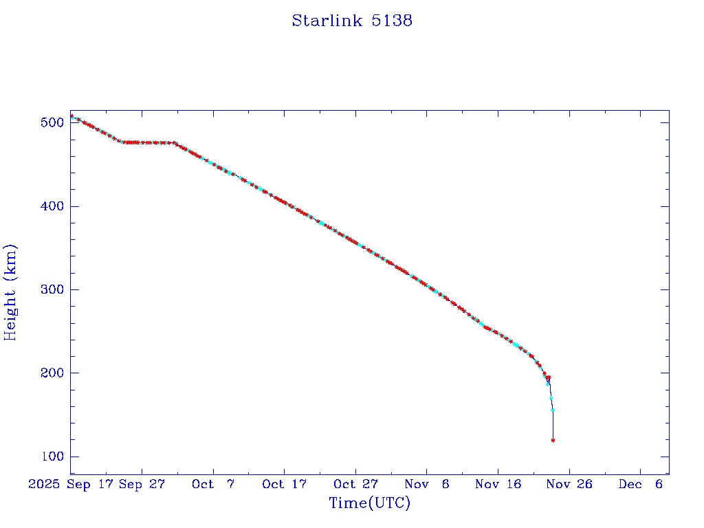 | Starlink 5138 | S54078 | R | 2022 Oct 20 | 2025 Nov 13? | 2025 Nov 23 |  |  |  |