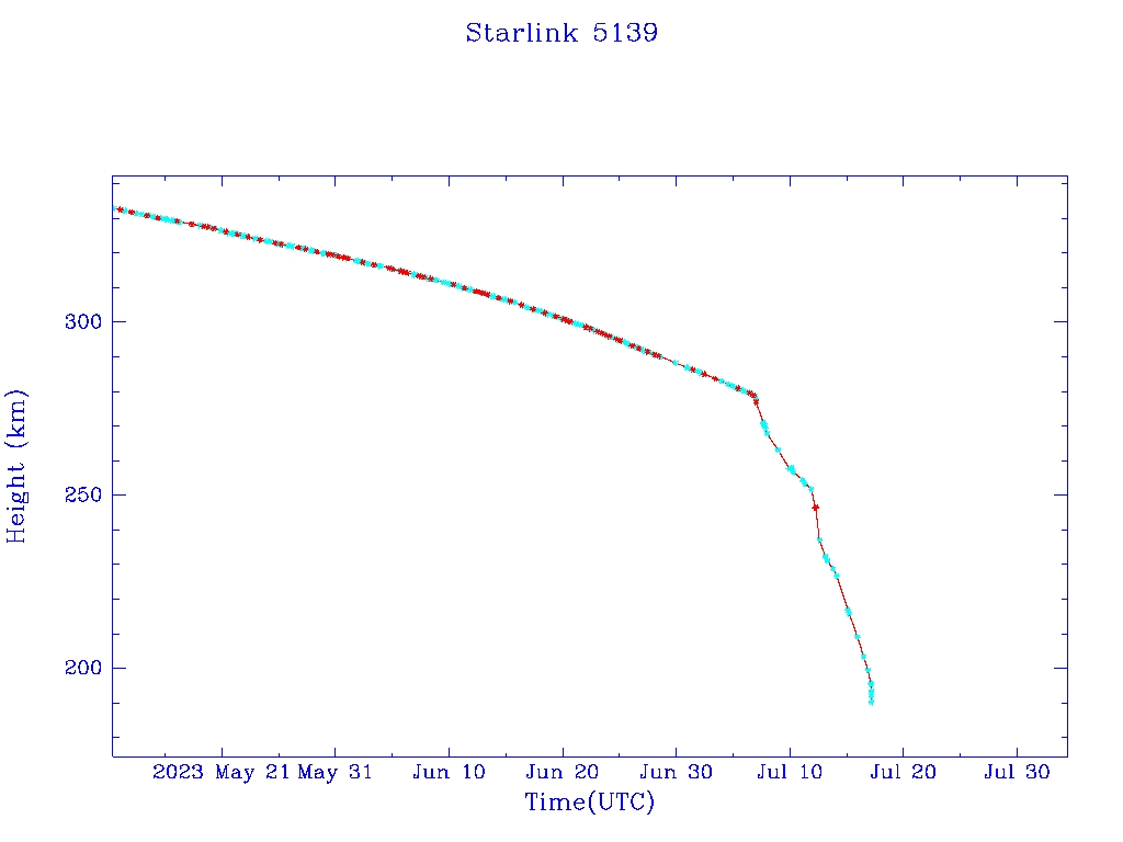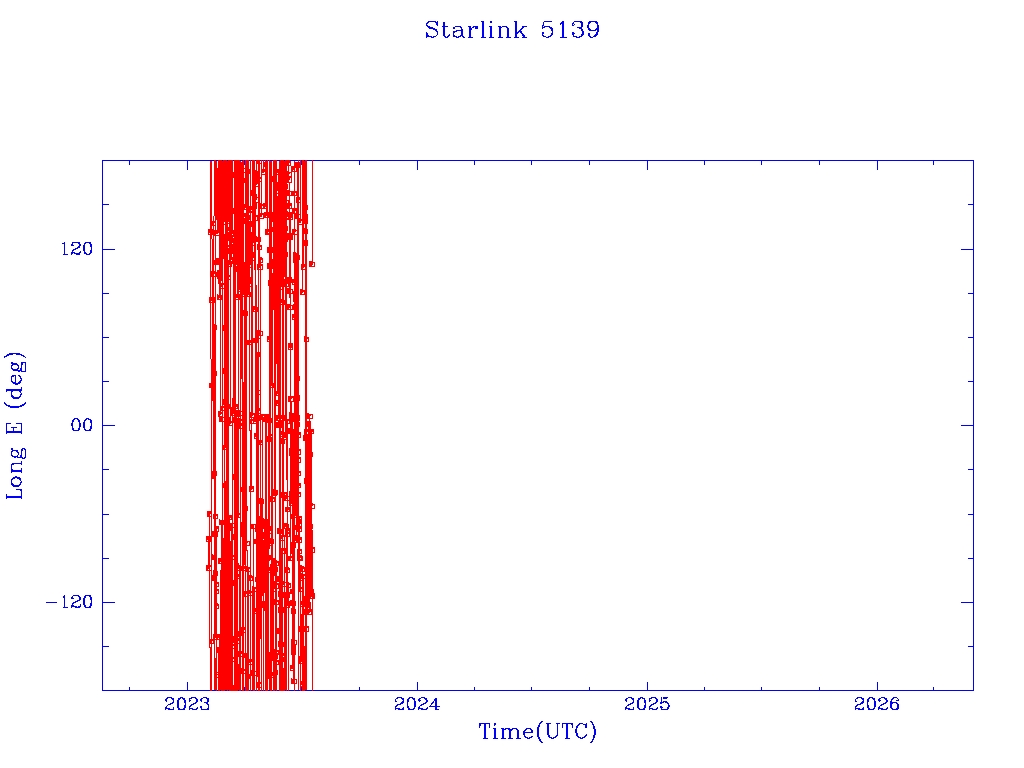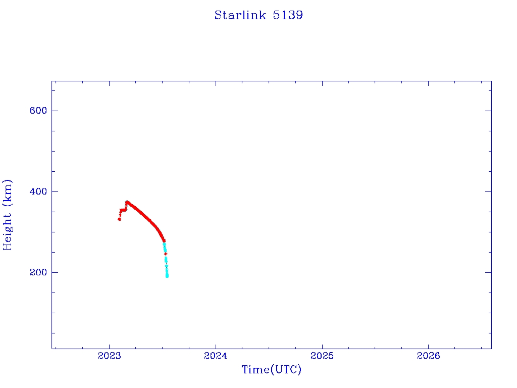 | Starlink 5139 | S55496 | F | 2023 Feb 2 | 2023 Jul 13? | 2023 Jul 17 |  |  |  |