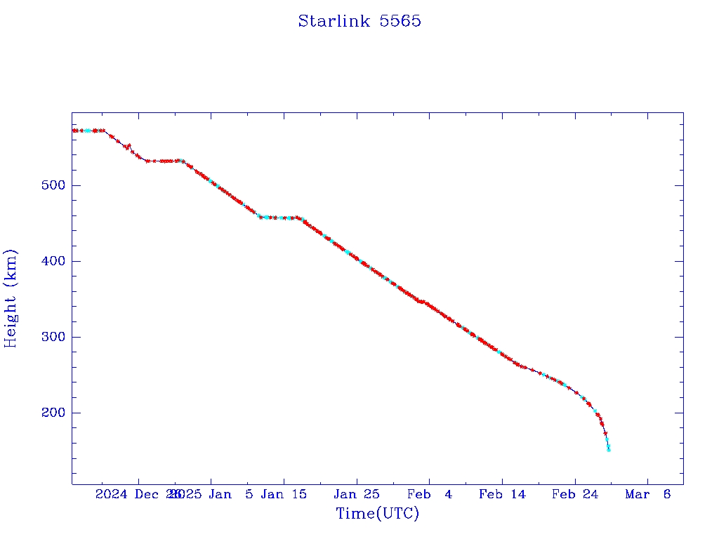 | Starlink 5565 | S55745 | R | 2023 Mar 3 | 2025 Feb 14? | 2025 Feb 21 |  |  |  |