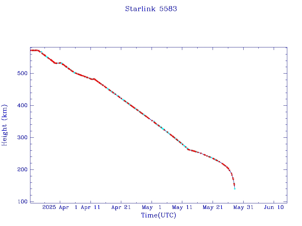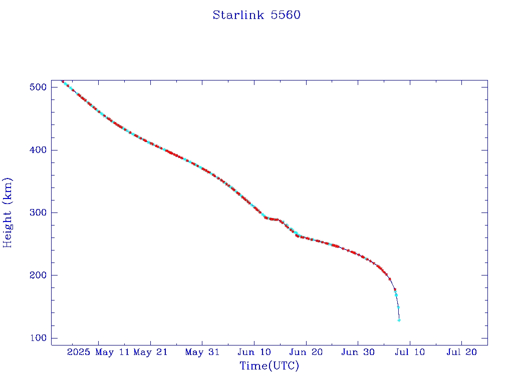 | Starlink 5560 | S55749 | R | 2023 Mar 3 | 2025 Jun 19? | 2025 Jul 7 |  |  |  |
