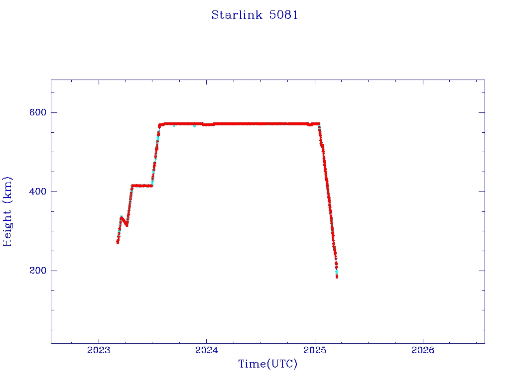 | Starlink 5081 | S55759 | R | 2023 Mar 3 | 2025 Mar 4? | 2025 Mar 15 |  |  |  |