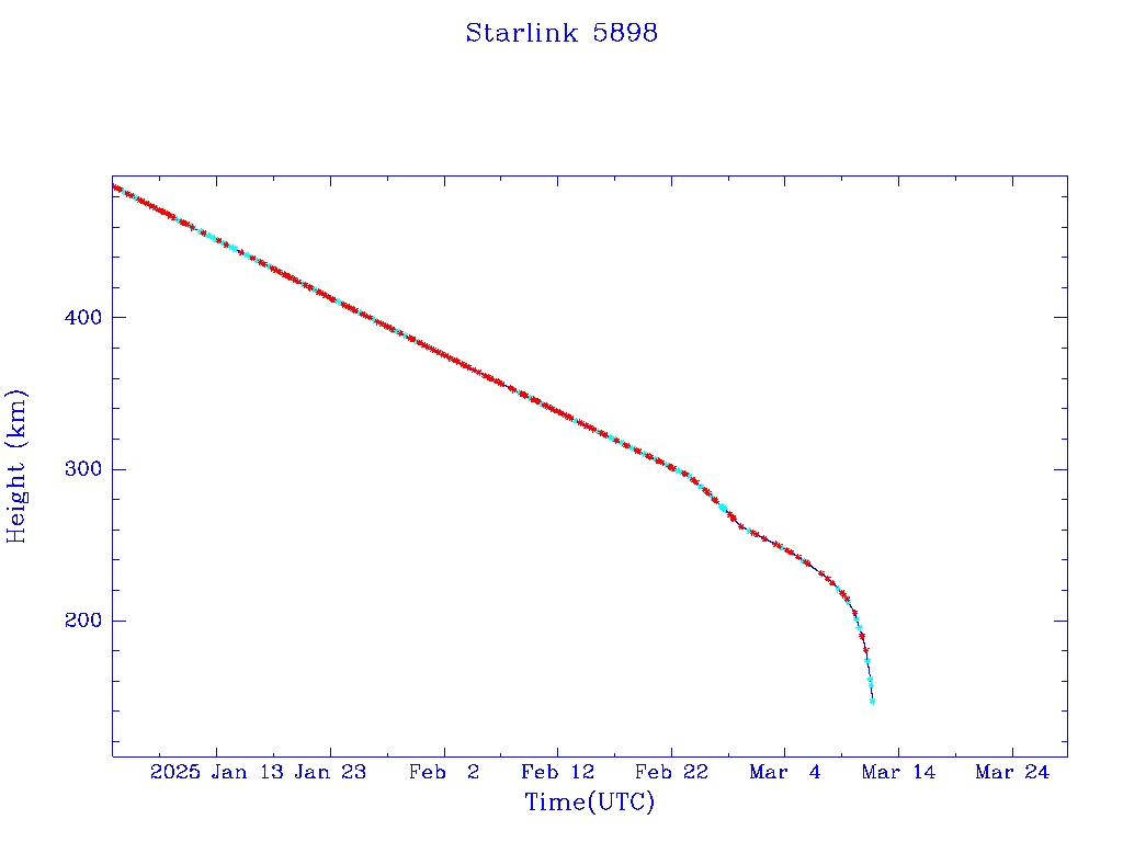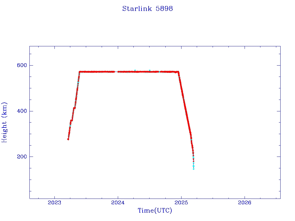 | Starlink 5898 | S55929 | R | 2023 Mar 17 | 2025 Feb 27? | 2025 Mar 11 |  |  |  |