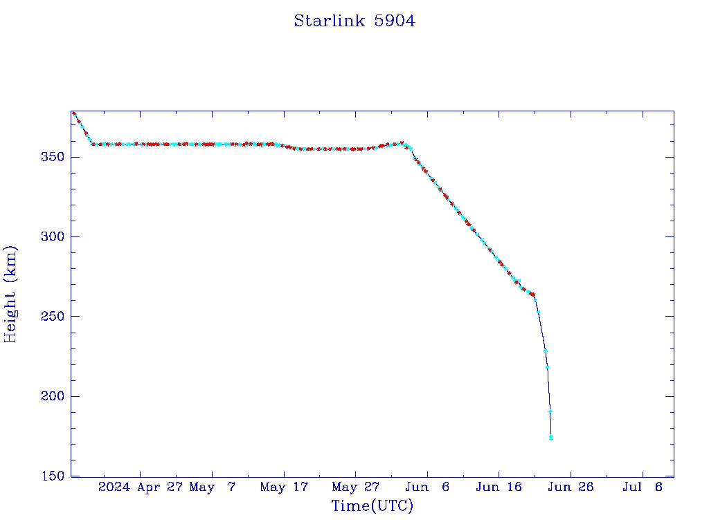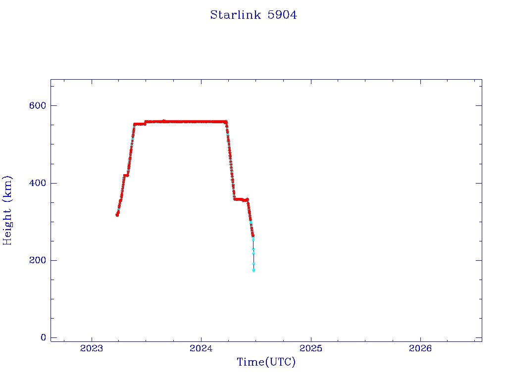 | Starlink 5904 | S55997 | R | 2023 Mar 24 | 2024 Jun 20 | 2024 Jun 23 |  |  |  |