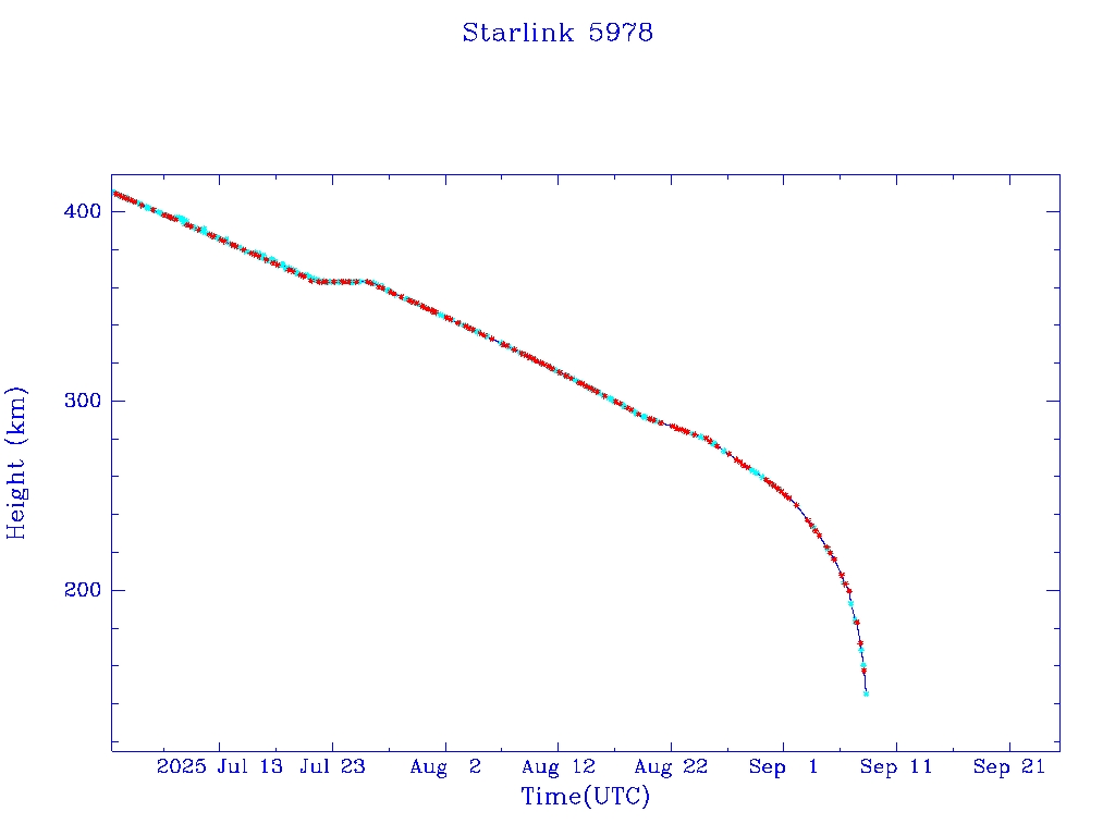 | Starlink 5978 | S56769 | R | 2023 May 31 | 2025 Aug 25? | 2025 Sep 8 |  |  |  |