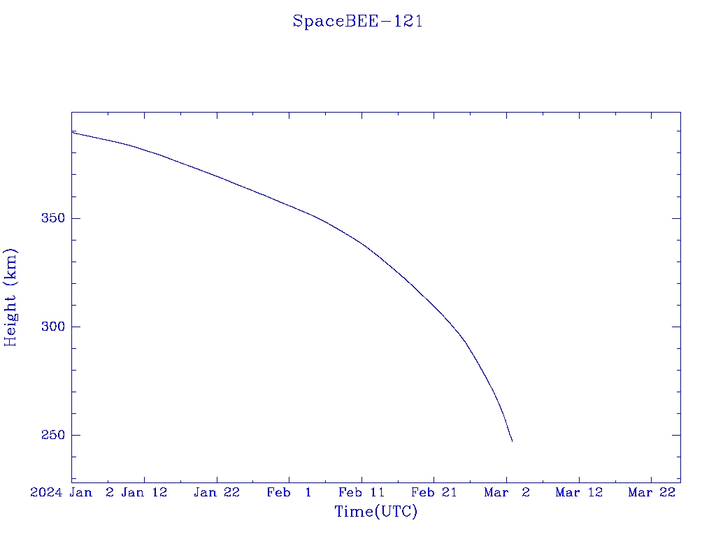 | SpaceBEE-124 | S52029 | | 2022 Mar 15 | 2024 Feb? | 2024 Mar 9 |  |  |  |