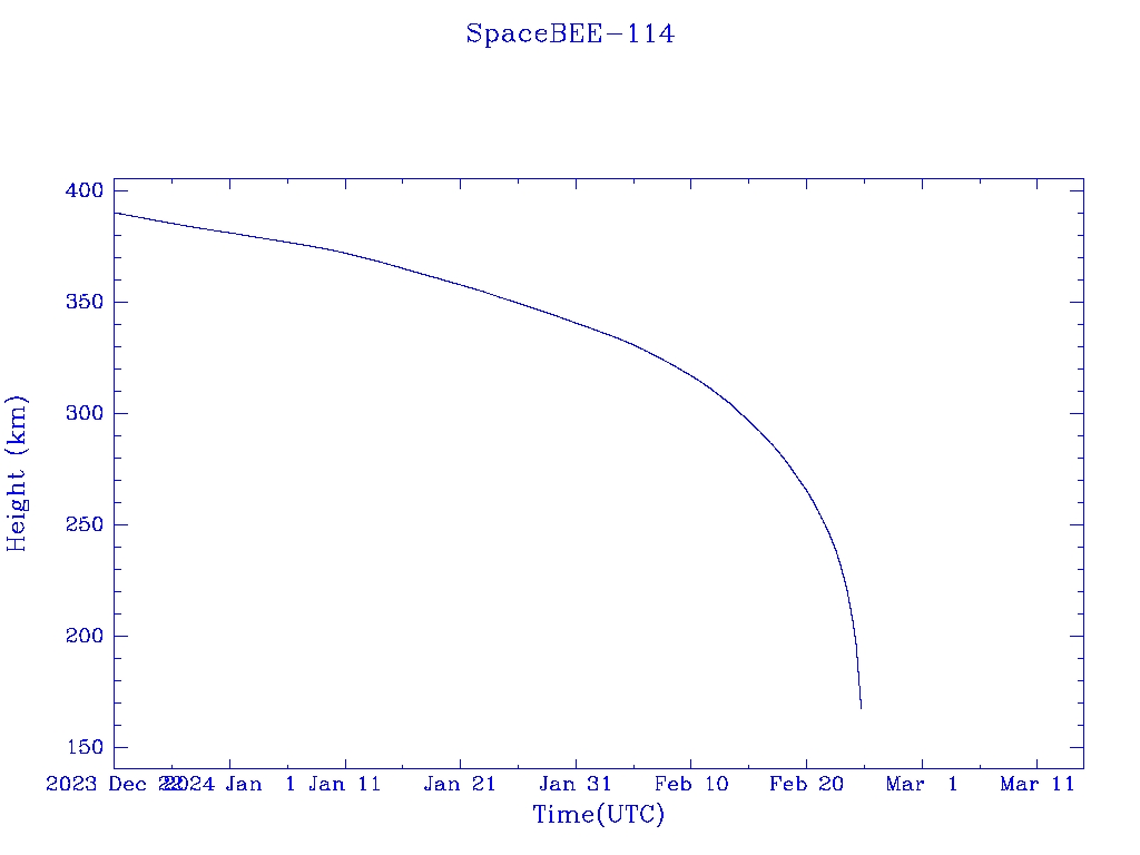 | SpaceBEE-123 | S52027 | | 2022 Mar 15 | 2024 Feb? | 2024 Mar 12 |  |  |  |