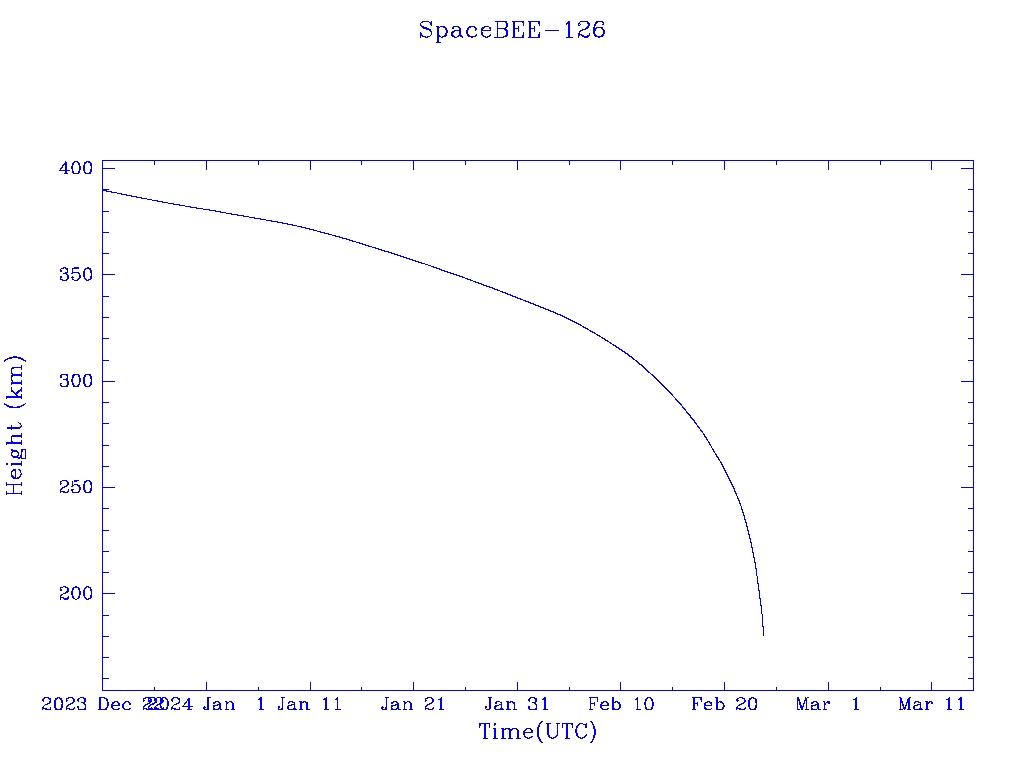 | SpaceBEE-126 | S52011 | | 2022 Mar 15 | 2024 Jan? | 2024 Feb 27 |  |  |  |