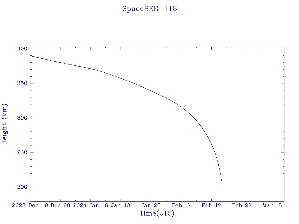 | SpaceBEE-118 | S52012 | | 2022 Mar 15 | 2024 Jan? | 2024 Feb 24 |  |  |  |