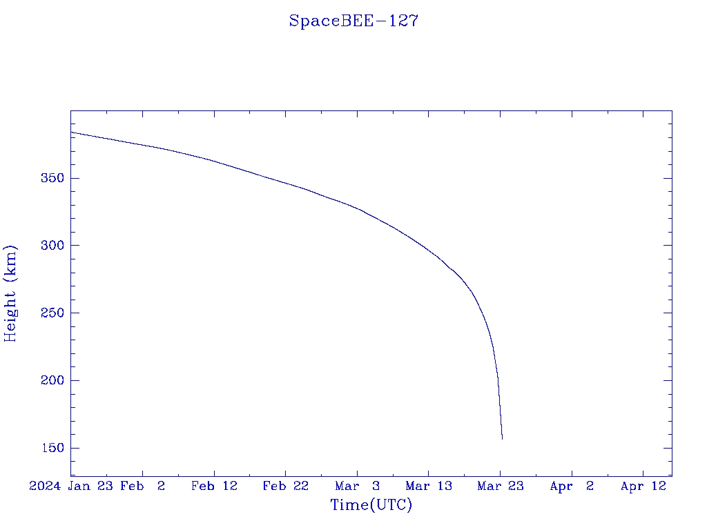 | SpaceBEE-127 | S52020 | | 2022 Mar 15 | 2024 Feb? | 2024 Mar 30 |  |  |  |