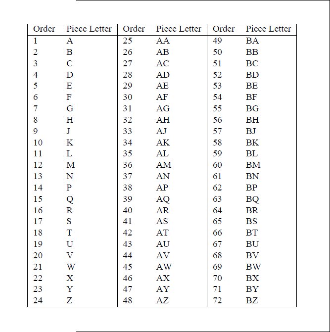The piece letters run from A to Z, then AA to AZ, BA ... to ZZ, AAA to AAZ,
