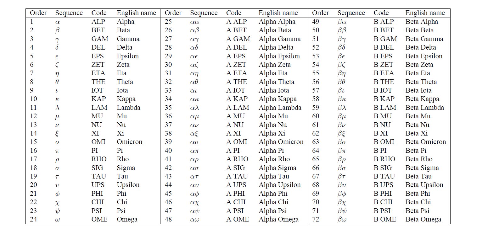 names of the Greek sequences, since the Greek alphabet may be less familiar to 21st-century readers.