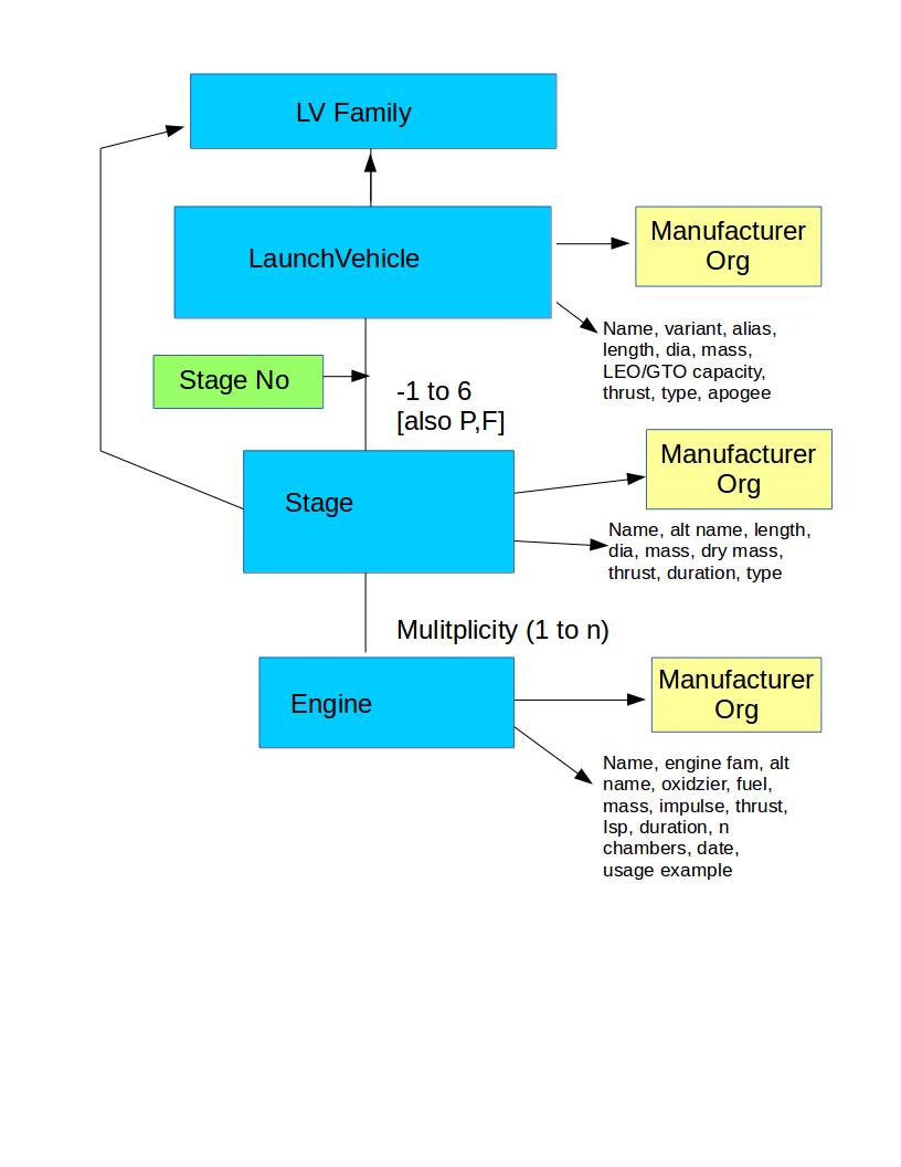 Schema for launch vehicle database, centered on the LaunchVehicle class.