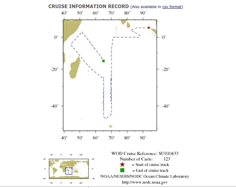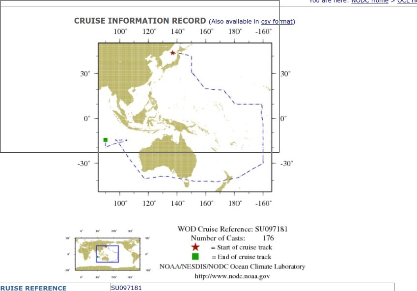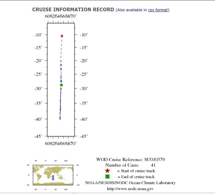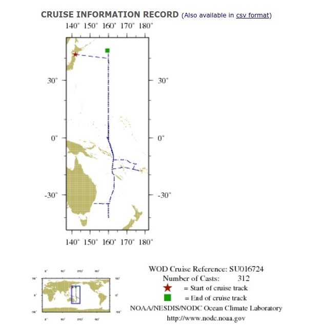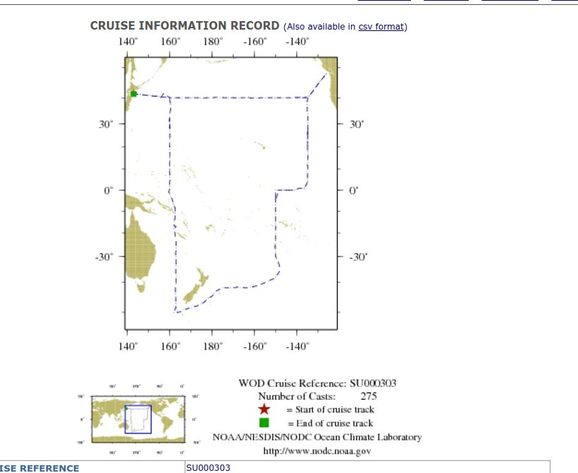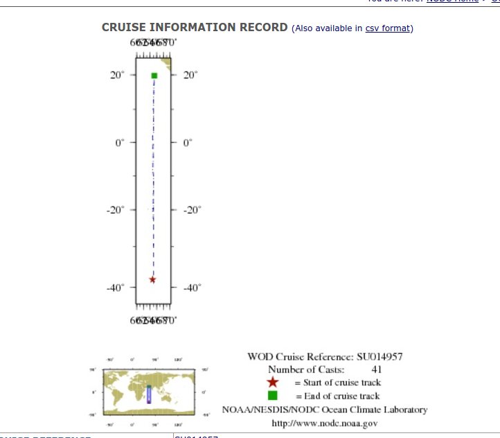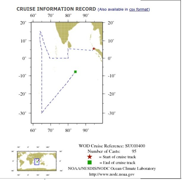 Oceanographic Data Center) database (nodc.noaa.gov) gives cruise data
