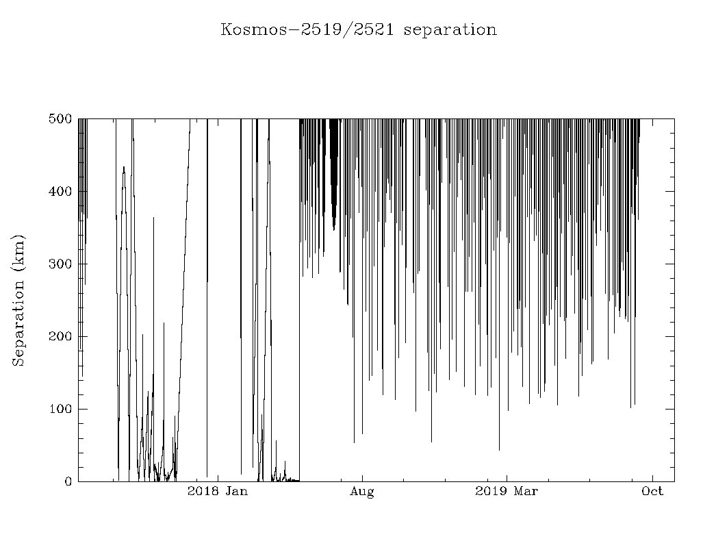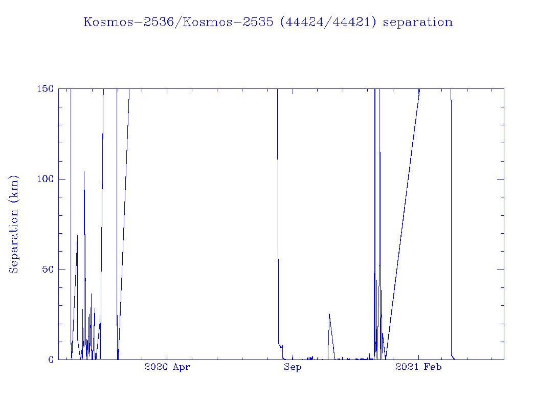 | Kosmos-2536 | 44424 | Inspector? | TsNIIKhM? | 2019 Jul-Oct | Rendezvous with 2535, servicing experiment | ||