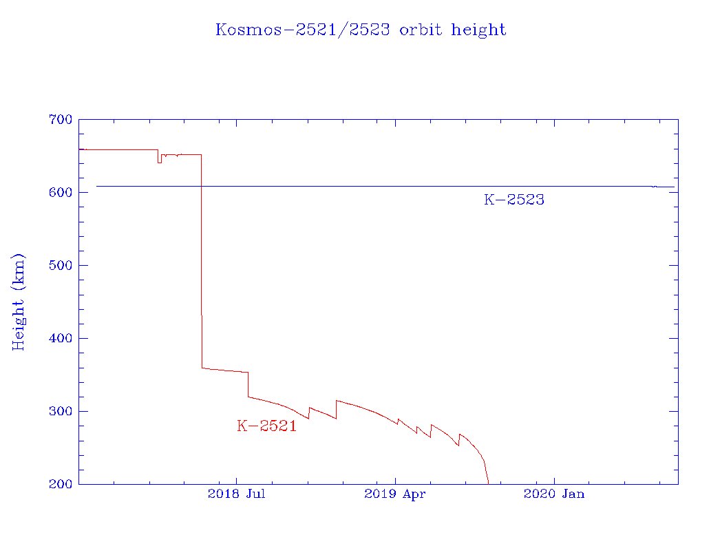 | Kosmos-2523 | 42986 | Projectile | TsNIIKhM? | 2017 Oct 30 | Ejected from 2521 at 27m/s | ||