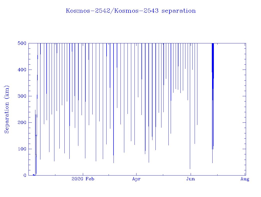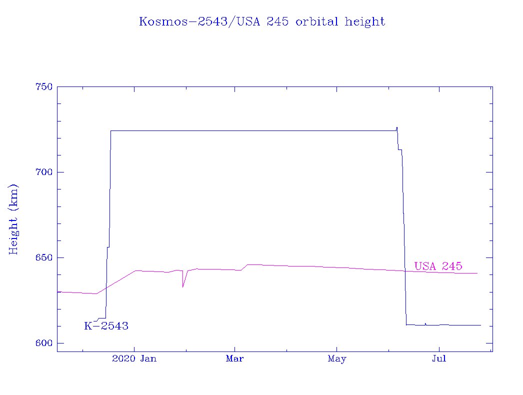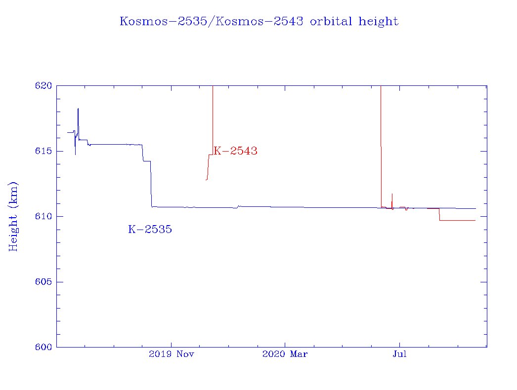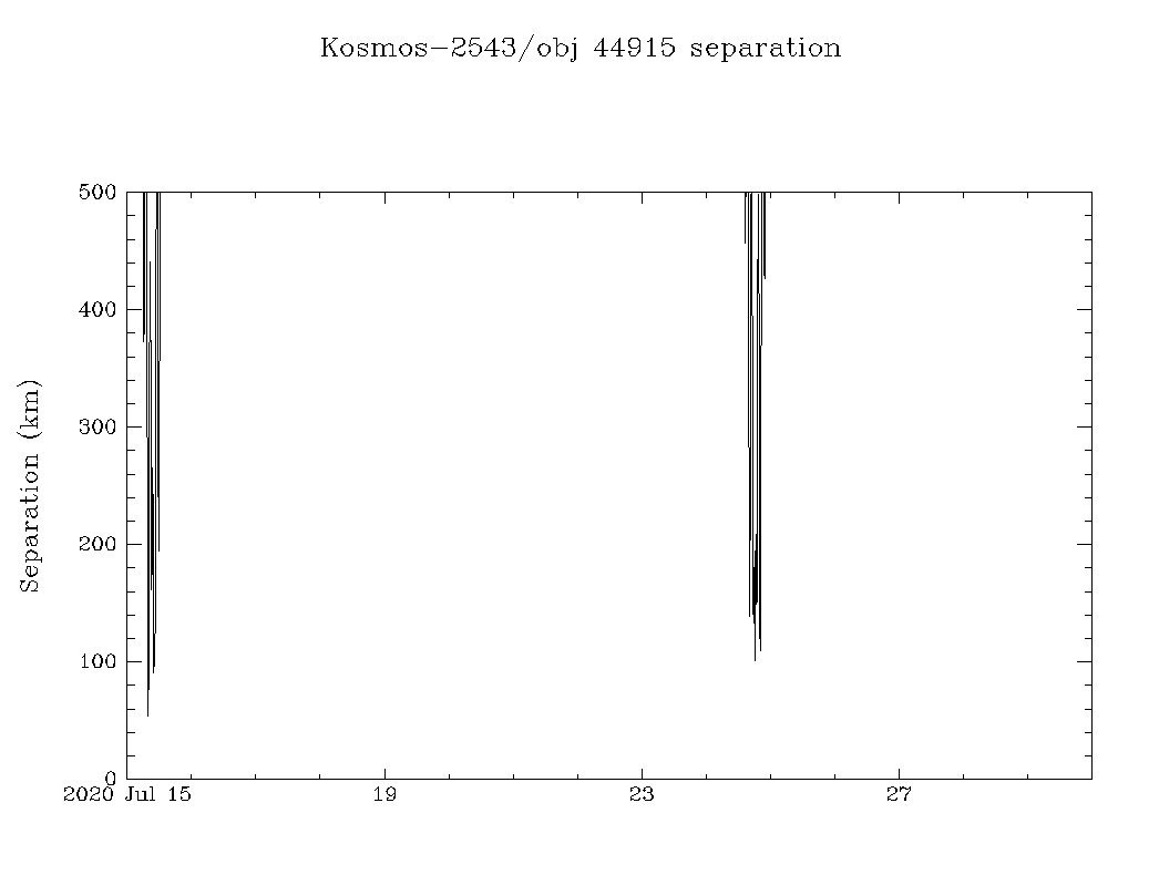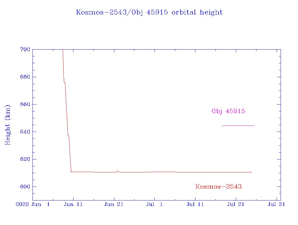 | Kosmos-2547? | 45915 | Projectile | TsNIIKm? | 2020 Jul 15 | Ejected from 2543 at 140-180m/s | ||