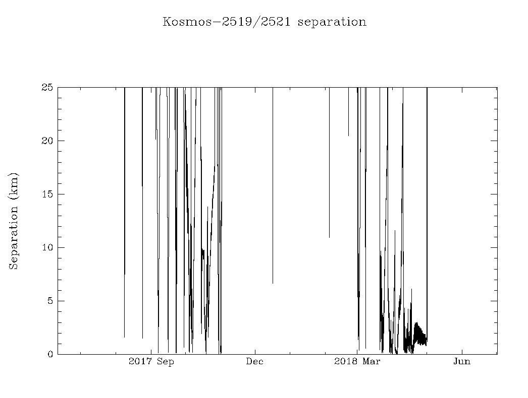 The US government has suggested that the satellites represent tests of space weapons. Bart Hendrickx has suggested the satellites are part of the Nivelir program. Thanks to Bart for useful comments.