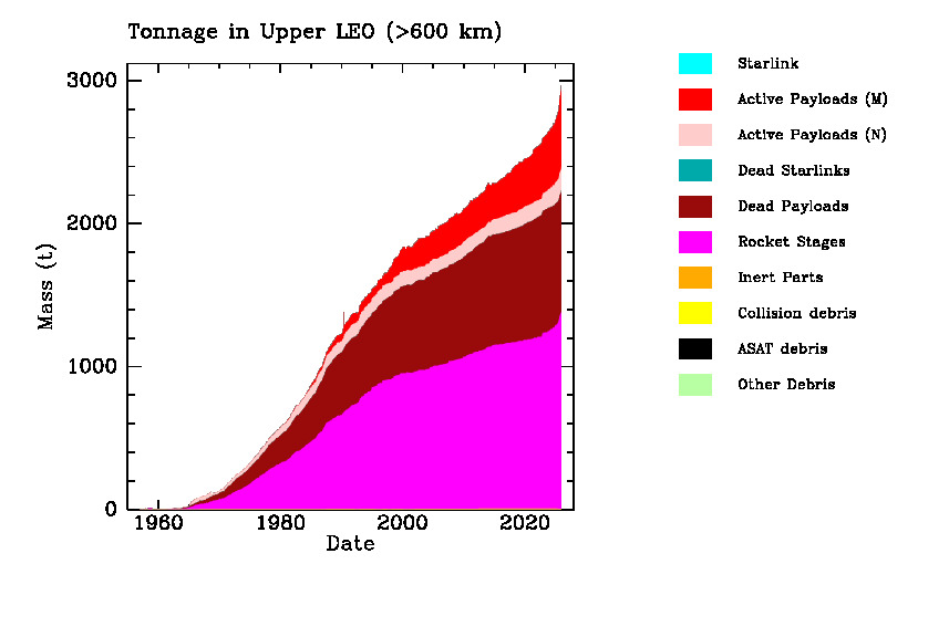 | Tonnage of other dead satellite payloads in orbit: | 2201.3 |