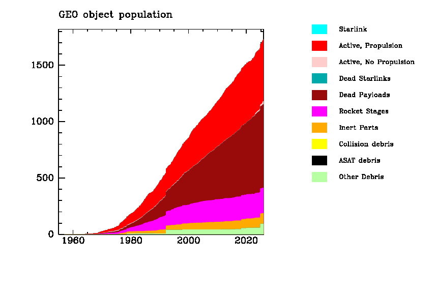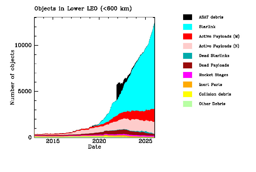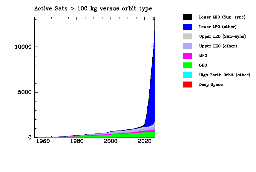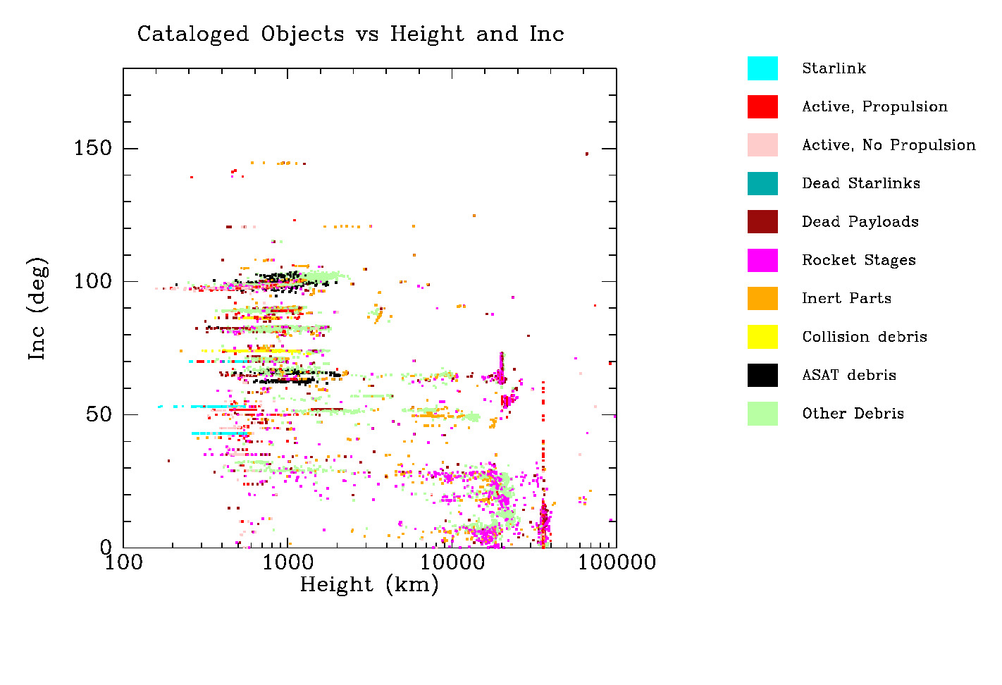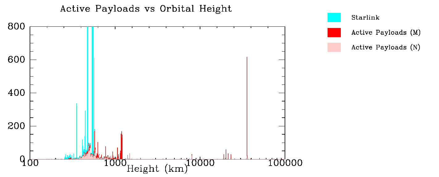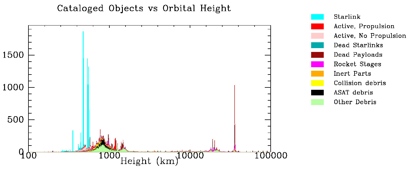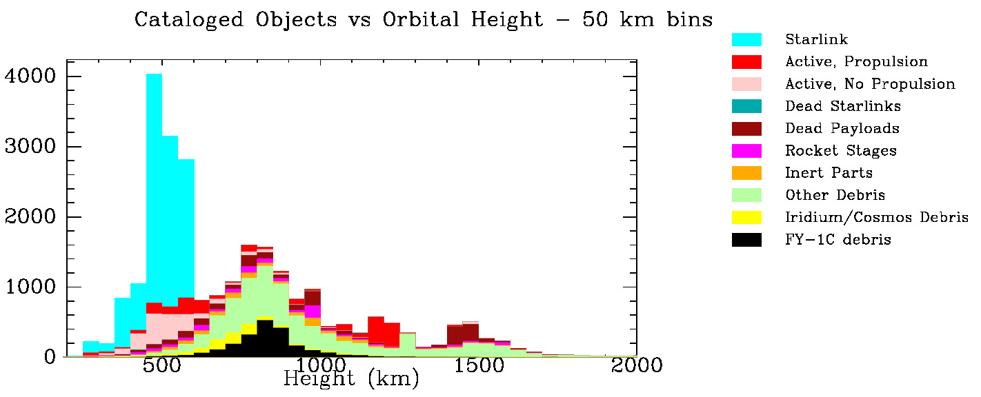 LEO Sat and Debris Population - number vs height, 50 km bins