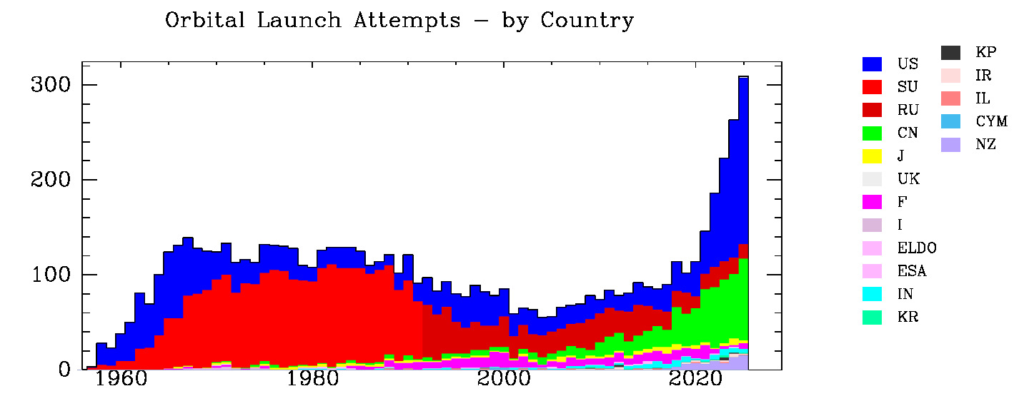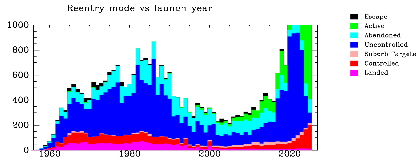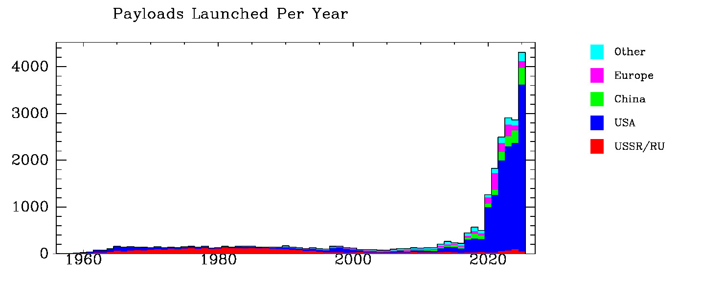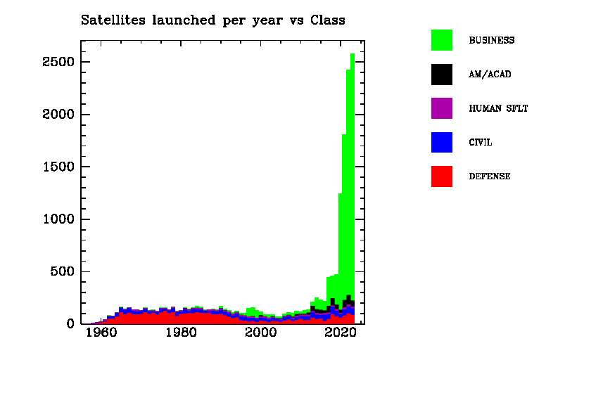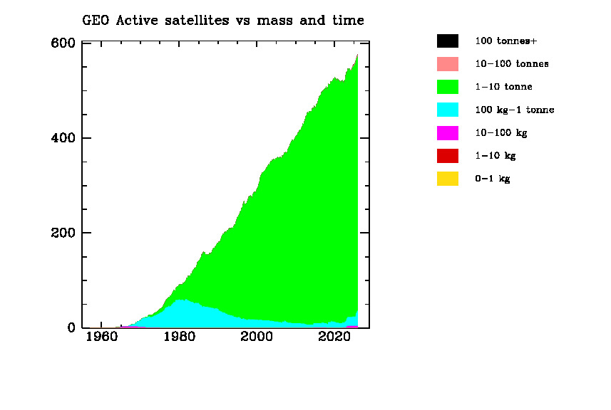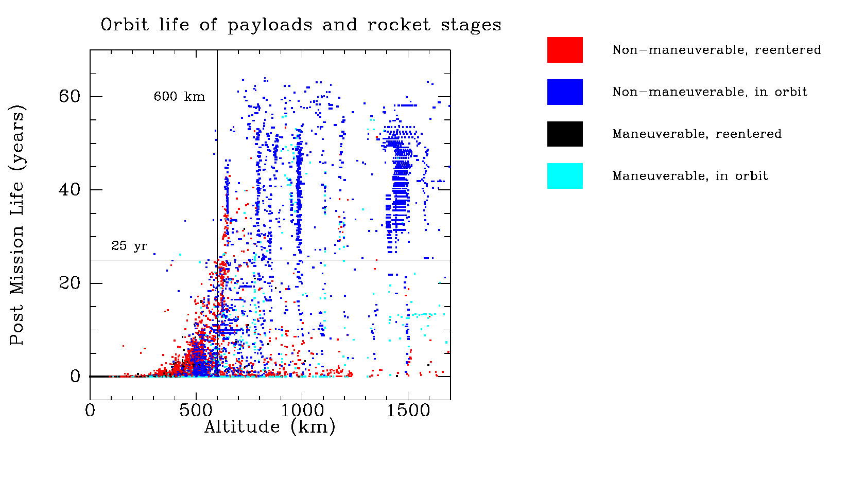 LEO Sat and Debris Population - number vs height, 50 km bins